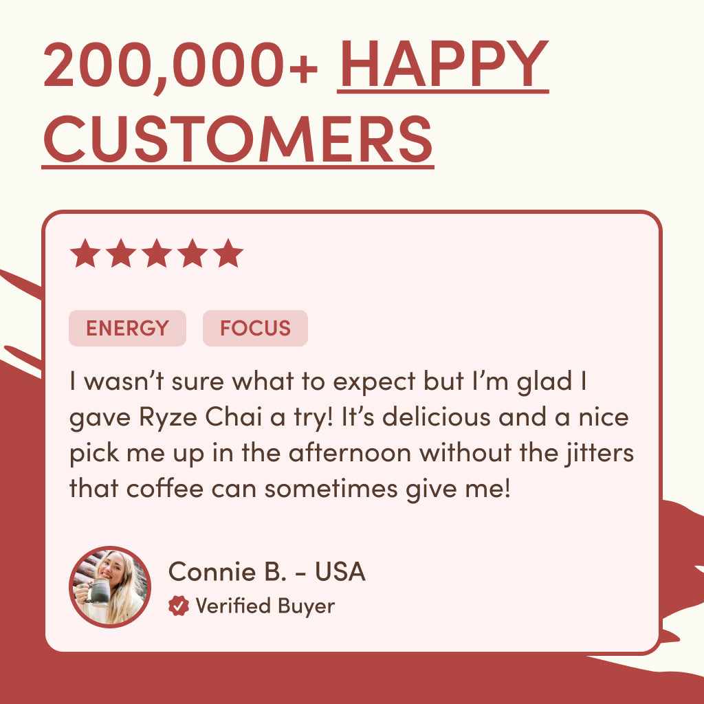 Savor the flavor of delicious chai while also giving your body and mind a boost. RYZE Chai is packed with 6 adaptogenic mushrooms and warming Ayurvedic spices to deliver balanced energy. better focus. and immune support.