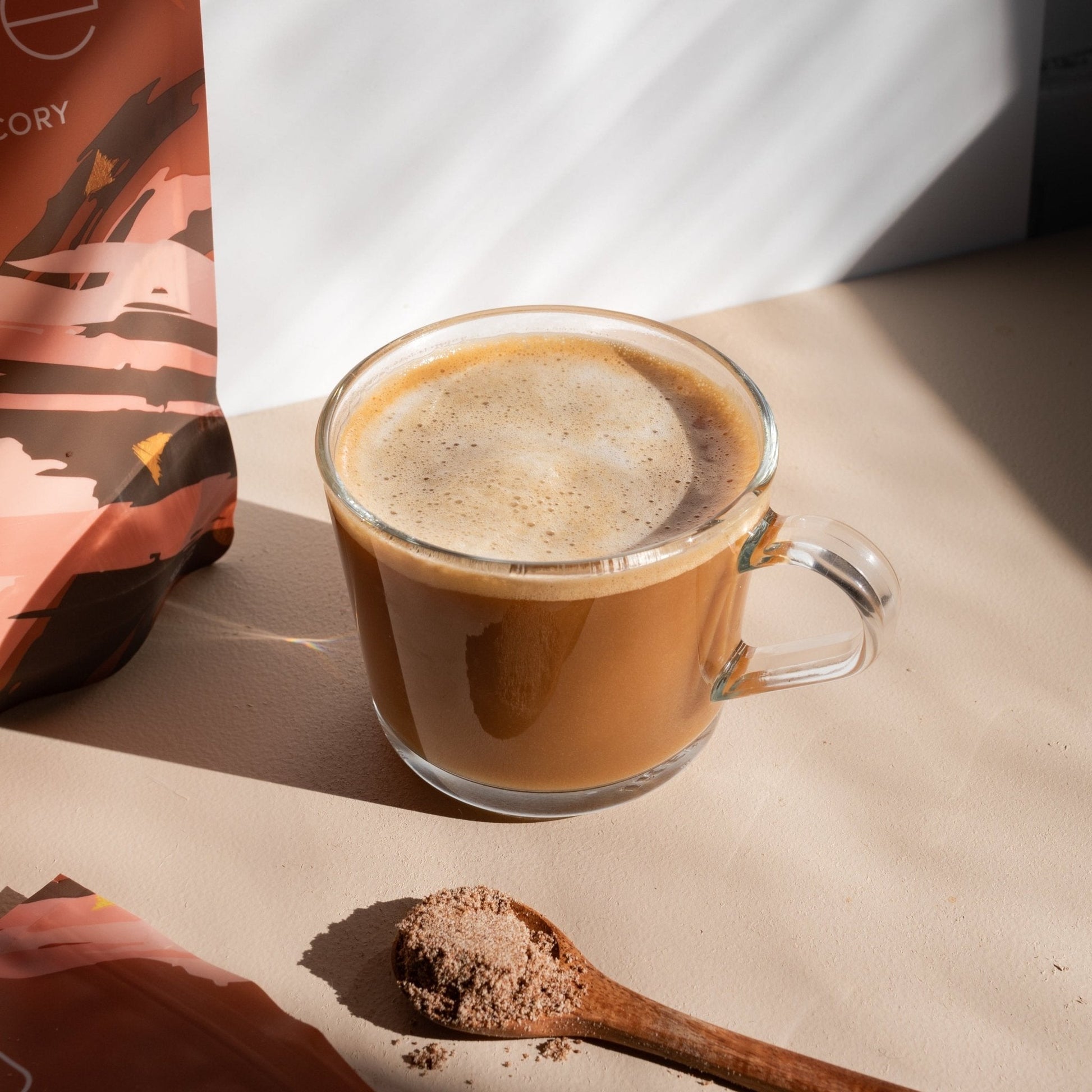 Chicory root is a rich in the prebiotic inulin. and has been used for thousands of years as a herbal healing remedy. Chicory paired with our 6 functional mushrooms can help balance digestion. improve your gut. heart. and kidney health and give you natural energy. Completely without caffeine or added sugar. and only 23 calories.